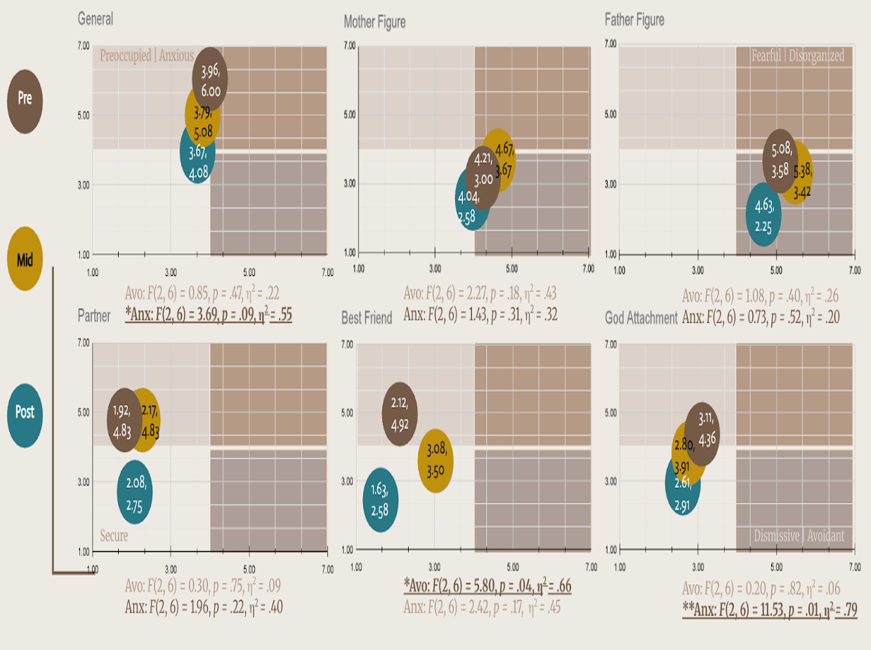 Other attachment categories (e.g., mother, father, partner) illustrated directional trends toward earned secure attachment, but more participants are required to see if such trends reach statistical significance in the future.